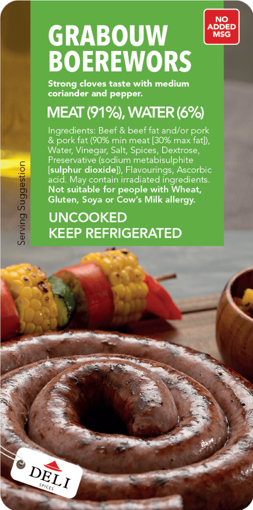 A ready pack for strong and spicy boerewors with rich clove notes enhanced by coriander and pepper flavors.