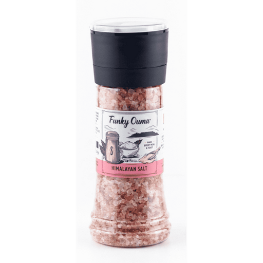 Funky Ouma Himalayan Salt, 250ml Made in South Africa & Imported by Aubergine Foods.