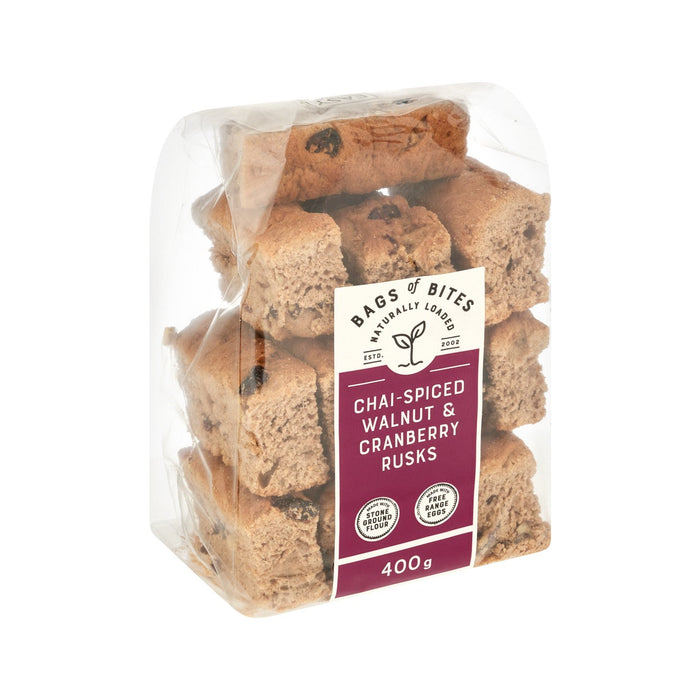 Bags of Bites Chai-Spiced Walnut & Cranberry Rusks 400g